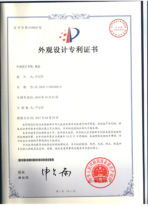 • 產(chǎn)品外觀專利證書